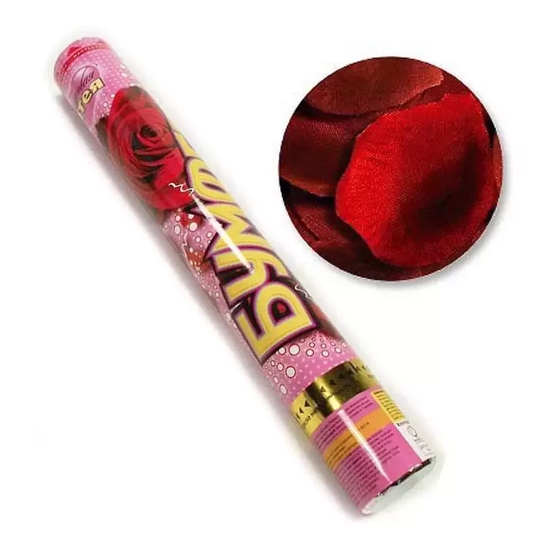 Бумфети - безопасная хлопушка, которая прекрасно подходит как для помещений, так и для салюта на улице! Хлопушка наполнена красными лепестками роз, выполненных из ткани. Устройте любимой дождь из роз! Вы также можете осыпать лепестками молодоженов! Бумфети работает на сжатом воздухе, дальность выстрела 5-7 м.