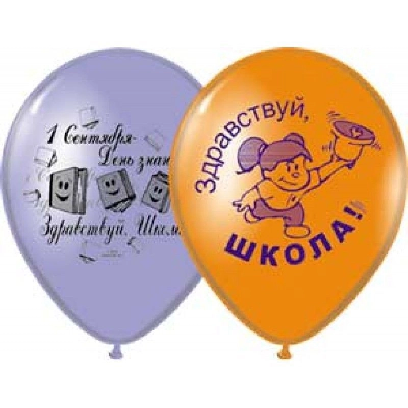 Высококачественный шар из натурального латекса.  Шары с двусторонним шелкографическим рисунком на темы "1 Сентября", "Здравствуй, школа" . Идеальный ассортимент для  украшения праздника.