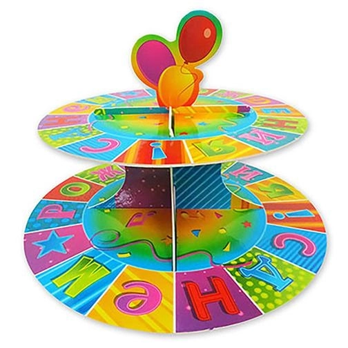 Яркая стойка-подставка для эффектного выставления кексов, тарталеток и других сладостей на вечеринке в честь дня рождения! Стойка двухярусная, выполнена из плотного ламинированного картона. На упаковке - инструкция по сборке, которая позволит Вам собрать конструкцию за пару минут.