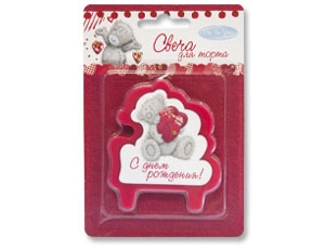 Свеча-табличка с Мишкой Me To You. Замечательный подарок на День рождения, который украсит праздничный стол и создаст хорошее настроение виновнику торжества и гостям. Высота свечи: 7 см.