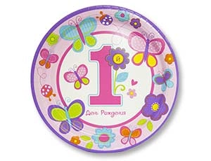 Цветы и сердца, божьи коровки, и, конечно, бабочки. Вашей красавице уже 1 год! В упаковке 8 ламинированных бумажных тарелок размером 25 см с надписью Ура! 1 День рождения.